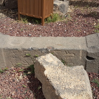 Jordan. Umm al Jimal, inscribed stone in both Greek and Nabataean, which reads, "This cult stone masikh dedicates to his god Dushara Arra", now in the Interpretive and Hospitality Center