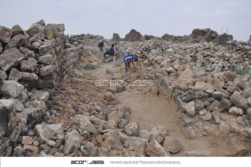 Jordan. Umm al Jimal, trail between House XVII and Roman Reservoir, photo taken before path was cleared, photo shows local workers clearing the site