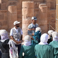 Jordan. Petra, Temple of the Winged Lions, schoolchildren take part in Experience ''Be An Archaeologist''