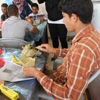 Jordan. Busayra, school group archaeological site visit and pottery activity
