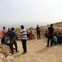 Jordan. Busayra, school group archaeological site visit and pottery activity