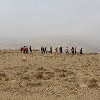 Jordan. Busayra, school group archaeological site visit and pottery activity