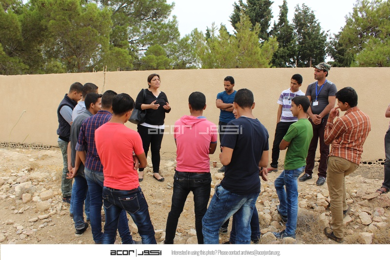 Jordan. Busayra, school group archaeological site visit and pottery activity