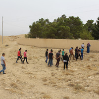 Jordan. Busayra, school group archaeological site visit and pottery activity