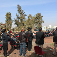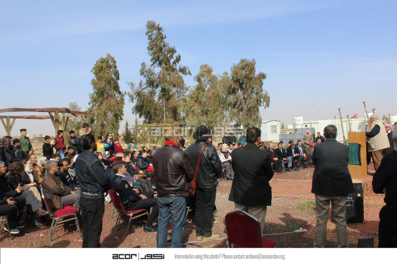 Jordan. Umm al Jimal, Prince Ra'ad bin Zeid giving a speech at groundbreaking ceremony, visitors