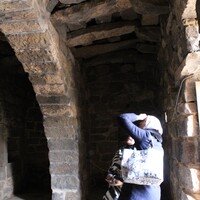 Jordan. Umm al Jimal, The Interpretive and Hospitality Center before the rehabilitations, visitors