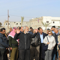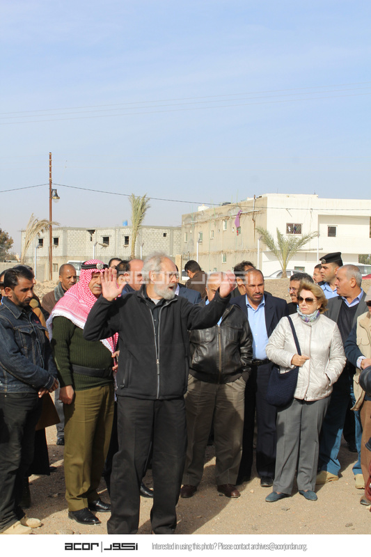Jordan. Umm al Jimal, Bert de Vries gives a tour to visitors at groundbreaking ceremony for the opening of the Interpretive and Hospitality Center