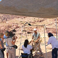 Jordan. Petra, BBC Travel Show taping at the Temple of the Winged Lions