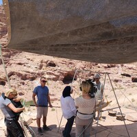 Jordan. Petra, BBC Travel Show taping at the Temple of the Winged Lions