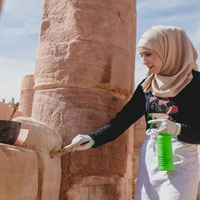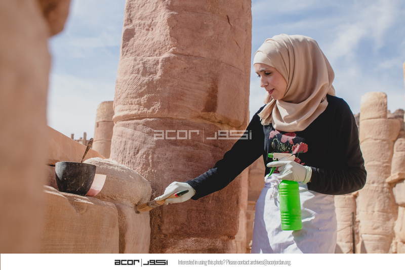 Jordan. Petra, Temple of the Winged Lions, Wajd Nawafleh mortaring