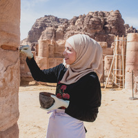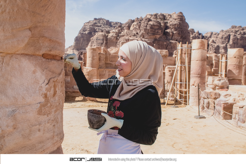 Jordan. Petra, Temple of the Winged Lions, Wajd Nawafleh mortaring