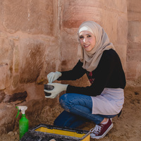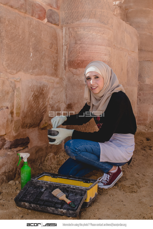 Jordan. Petra, Temple of the Winged Lions, Wajd Nawafleh mortaring