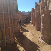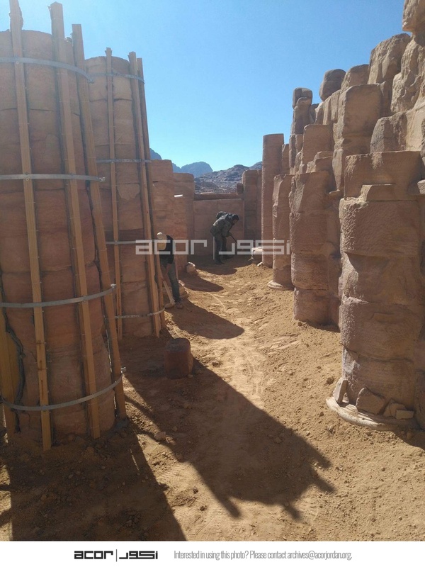 Jordan. Petra, Temple of the Winged Lions, backfilling layer added over geotextile on west side of cella