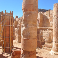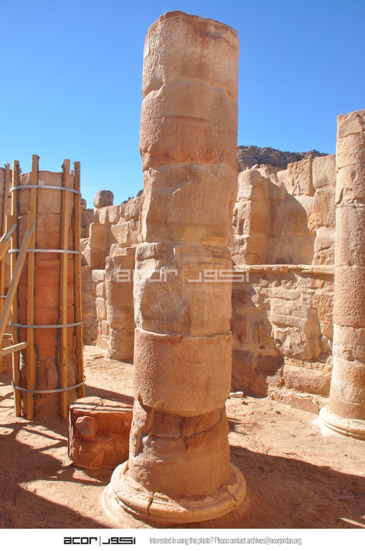 Jordan. Petra, Temple of the Winged Lions, restored column 34E in the cella with fragmentary adjacent second drum that was replaced with the alternative drum from lapidarium