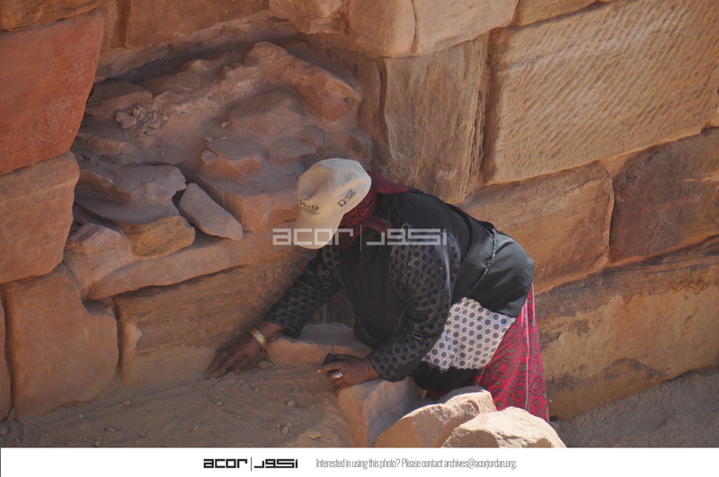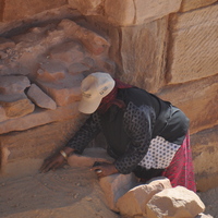 Jordan. Petra, Temple of the Winged Lions, Khitmeh Aljdelat compacting soil by hand