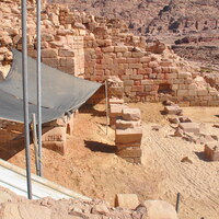 Jordan. Petra, Temple of the Winged Lions, the southwest quadrant partially backfilled