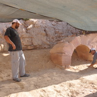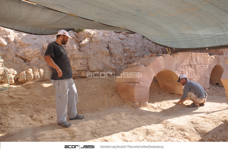 Jordan. Petra, Temple of the Winged Lions, TWL team members Shaker Alfaqeer and Ahmad Mowasa in southwest quadrant
