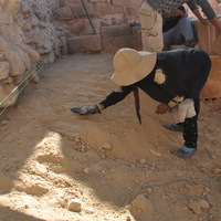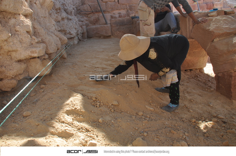 Jordan. Petra, Temple of the Winged Lions, landscape team members creating the buttress in the southwest quadrant