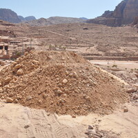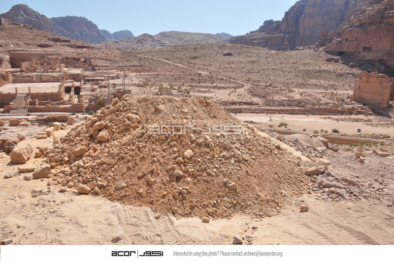 Jordan. Petra, Temple of the Winged Lions, top of southwest quadrant, soil from outside Petra archaeological park, brought in for backfilling