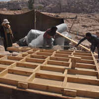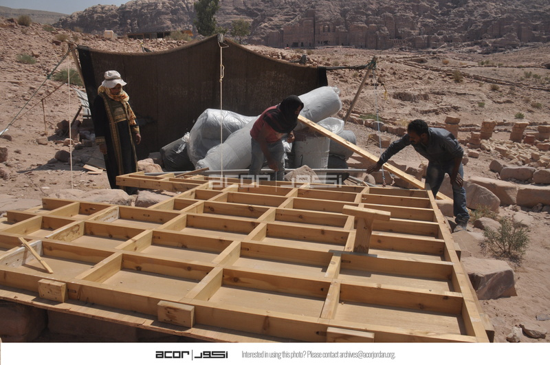 Jordan. Petra, Temple of the Winged Lions, breaking down the wooden cover from the cella podium for reuse in the cella