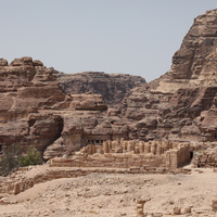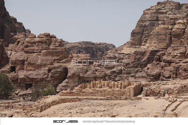 Jordan. Petra, Temple of the Winged Lions, view of TWL towards the west with Jabal Habis in the background, showing site after conservation work, accessible from pathway