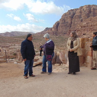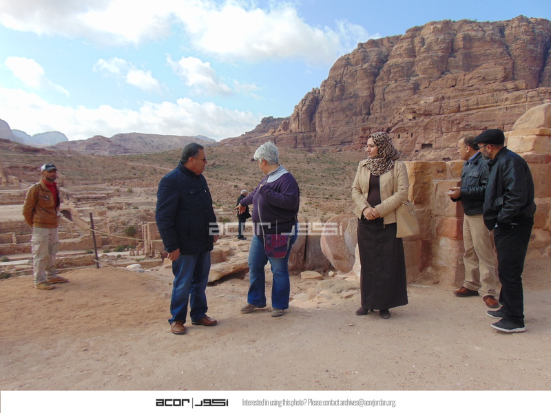 Jordan. Petra, Temple of the Winged Lions, Director General of the Dept. of Antiquities Dr. Monther Jamhawi with Jehad Haron, Elena Ronza, and Sana Al Hamadeen and Ghassan Al Deir of the Dept. of Antiquities