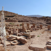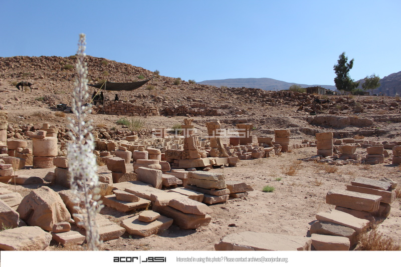 Jordan. Petra, Temple of the Winged Lions, lapidarium with asphodel flower in foreground