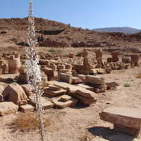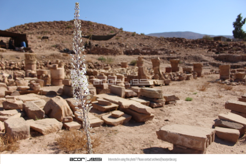 Jordan. Petra, Temple of the Winged Lions, lapidarium with asphodel flower in foreground