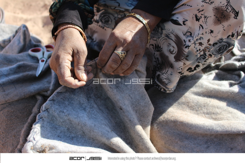 Jordan. Petra, Temple of the Winged Lions, team member sewing sandbags