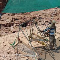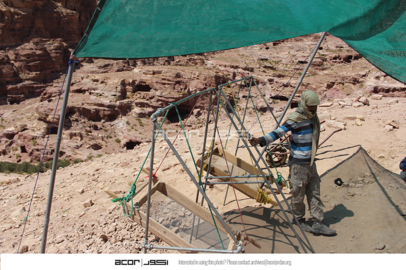 Jordan. Petra, Temple of the Winged Lions, sifting station, team members