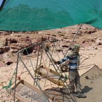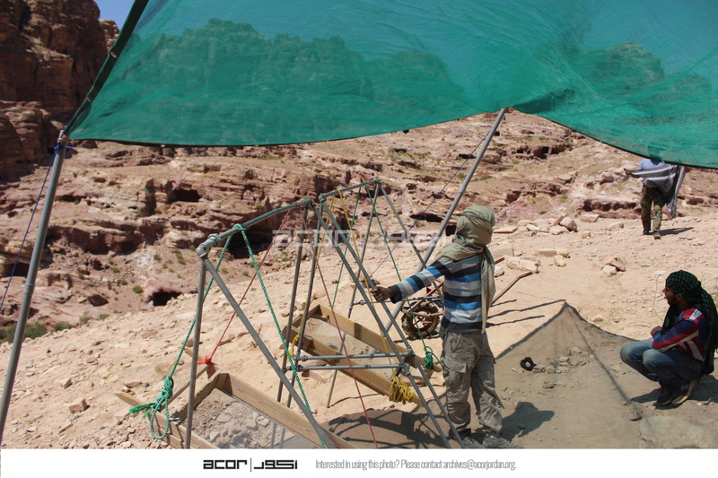 Jordan. Petra, Temple of the Winged Lions, sifting station, team members