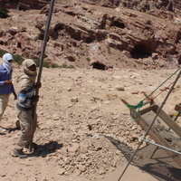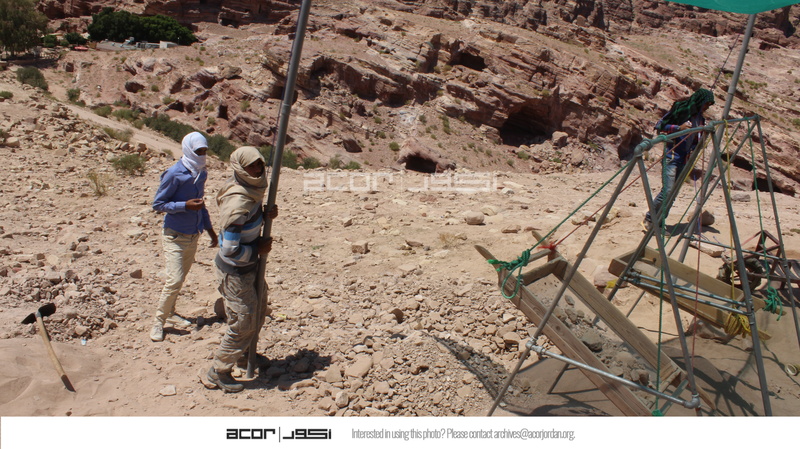 Jordan. Petra, Temple of the Winged Lions, sifting station, team members