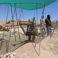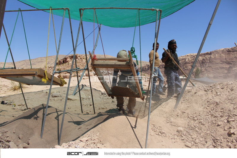Jordan. Petra, Temple of the Winged Lions, sifting station, team members