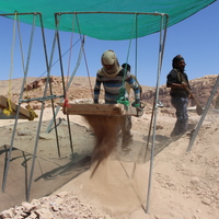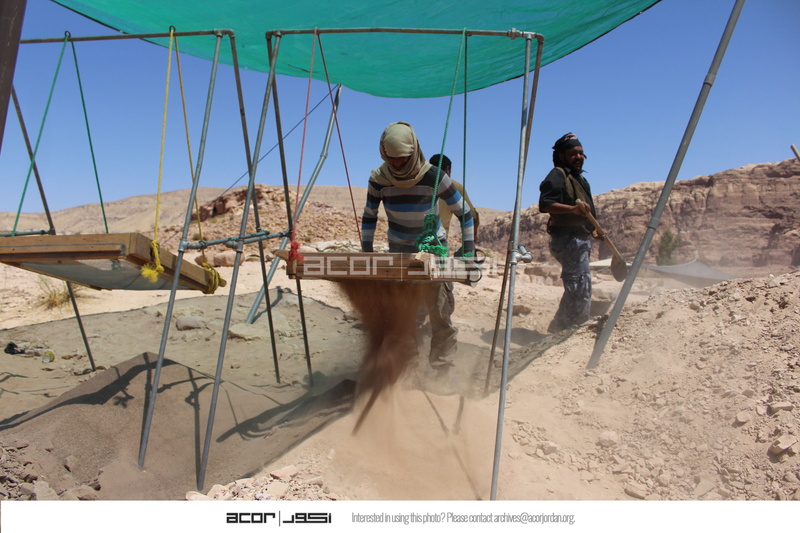 Jordan. Petra, Temple of the Winged Lions, sifting station, team members