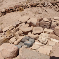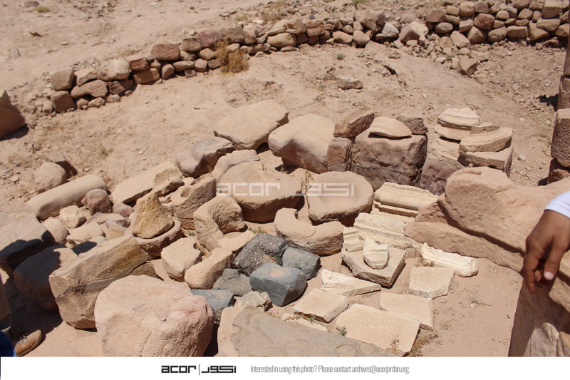 Jordan. Petra, Temple of the Winged Lions, architectural fragments and grinding stones