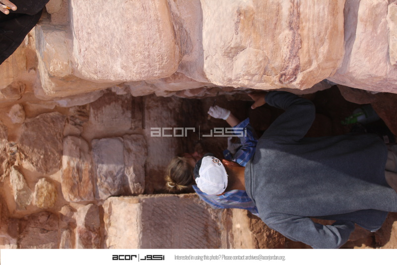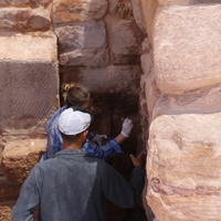 Jordan. Petra, Temple of the Winged Lions, team members mortaring wall in southwest quadrant