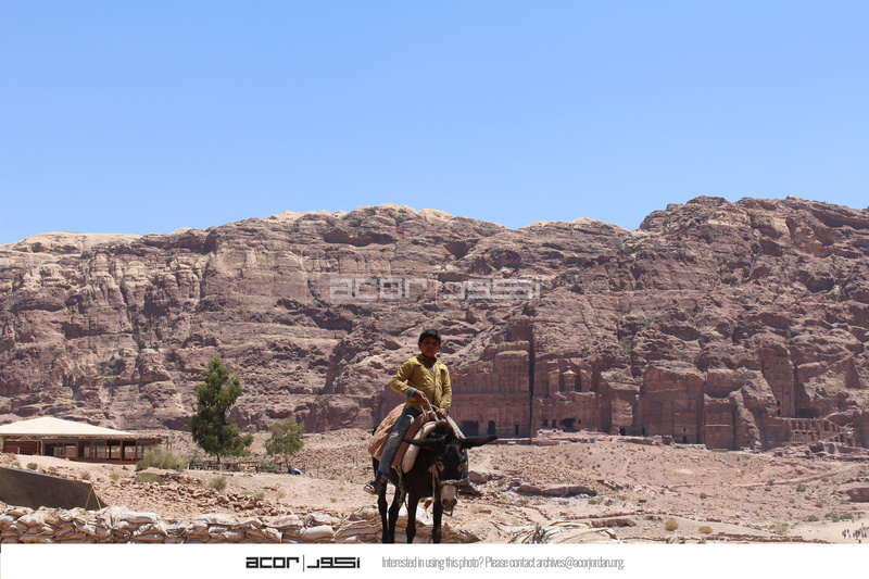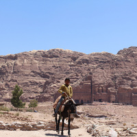 Jordan. Petra, Temple of the Winged Lions, boy on donkey