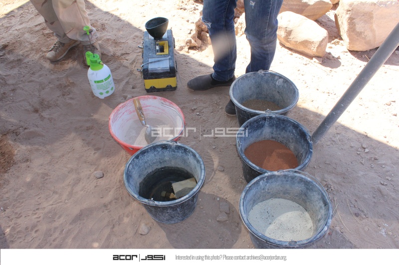 Jordan. Petra, Temple of the Winged Lions, materials for mixing mortar