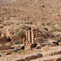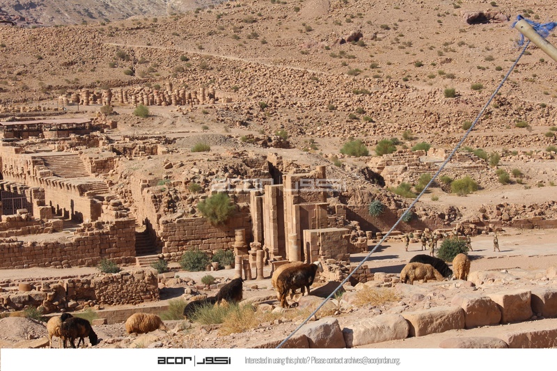 Jordan. Petra, Temple of the Winged Lions, sheep grazing on site