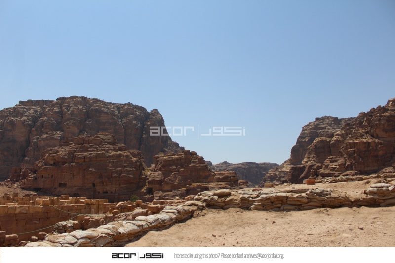Jordan. Petra, Temple of the Winged Lions, sandbags in the northern area of site