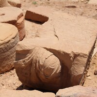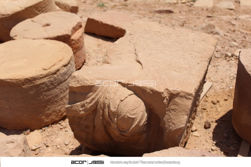 Jordan. Petra, Temple of the Winged Lions, piece of sculpture from pronaos, shoulder from a male bust