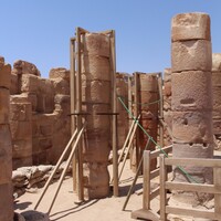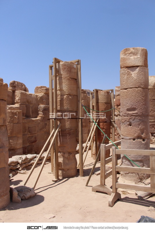 Jordan. Petra, Temple of the Winged Lions, looking at west aisle of cella with wooden column braces