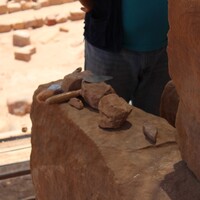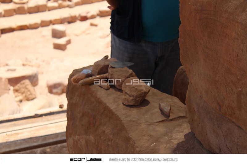 Jordan. Petra, Temple of the Winged Lions, detail of wall with stones and conservation tools
