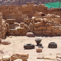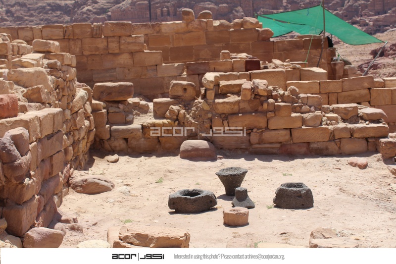 Jordan. Petra, Temple of the Winged Lions, basalt grinding stones in room within northern complex