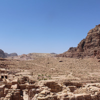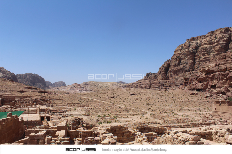 Jordan. Petra, Temple of the Winged Lions, northern complex next to temple, facing south, Umm el Biyara in the background