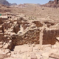 Jordan. Petra, Temple of the Winged Lions, northern complex next to temple, facing south