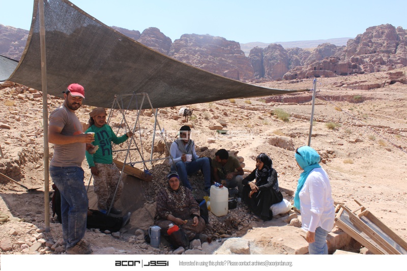 Jordan. Petra, Temple of the Winged Lions, team members in a sifting station