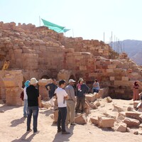 Jordan. Petra, Temple of the Winged Lions, within southwest quadrant facing east, team members