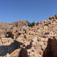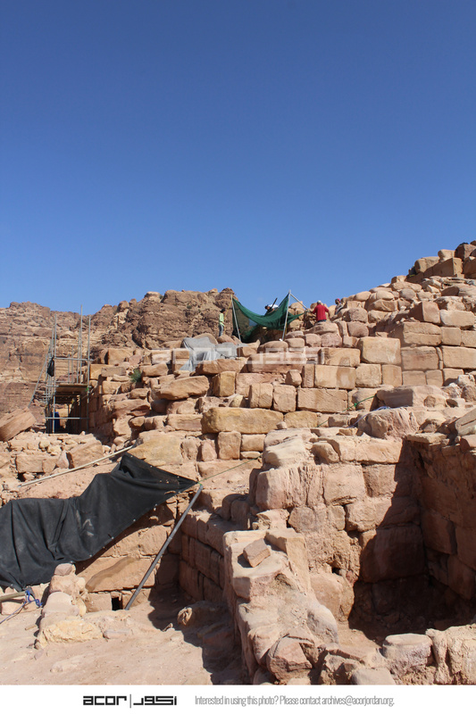 Jordan. Petra, Temple of the Winged Lions, south side of temple (pronaos) facing west