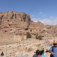 Jordan. Petra, Temple of the Winged Lions, temporary scaffolding for conservation, team members